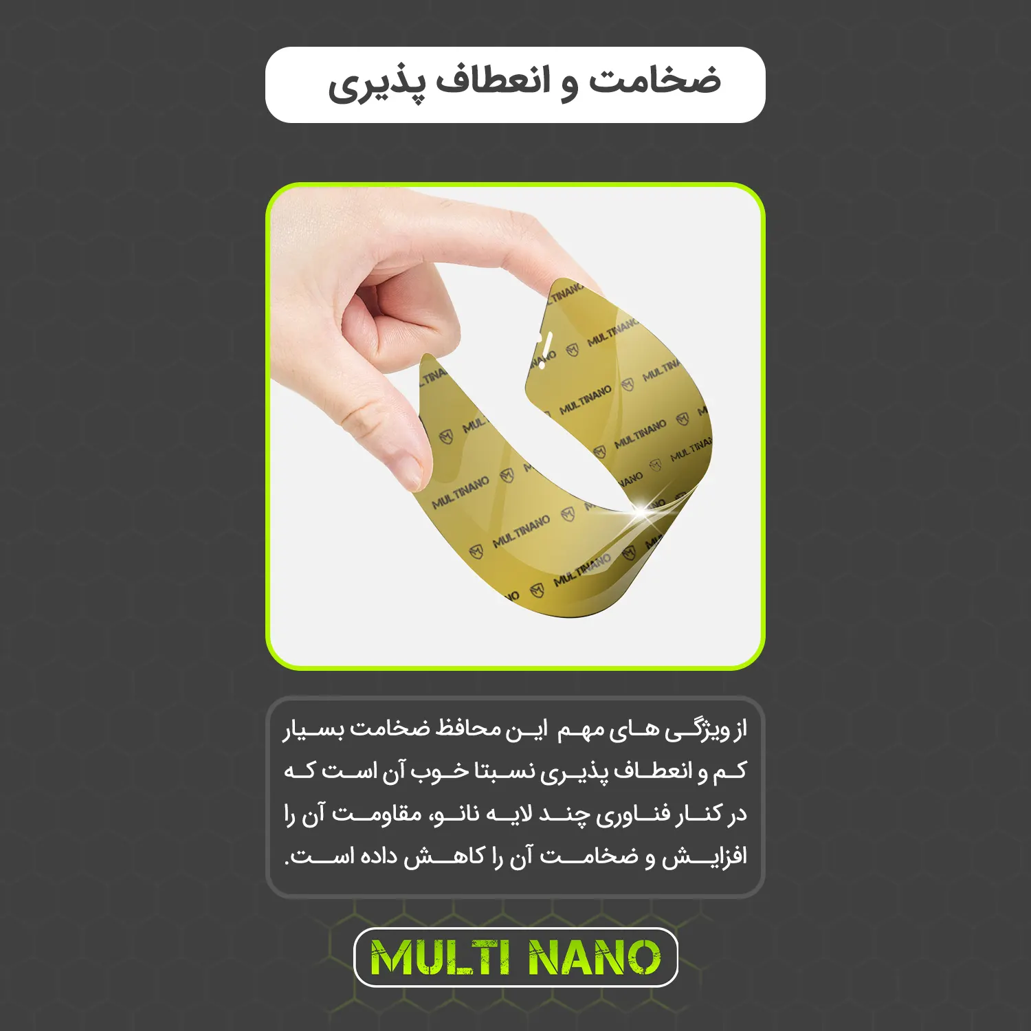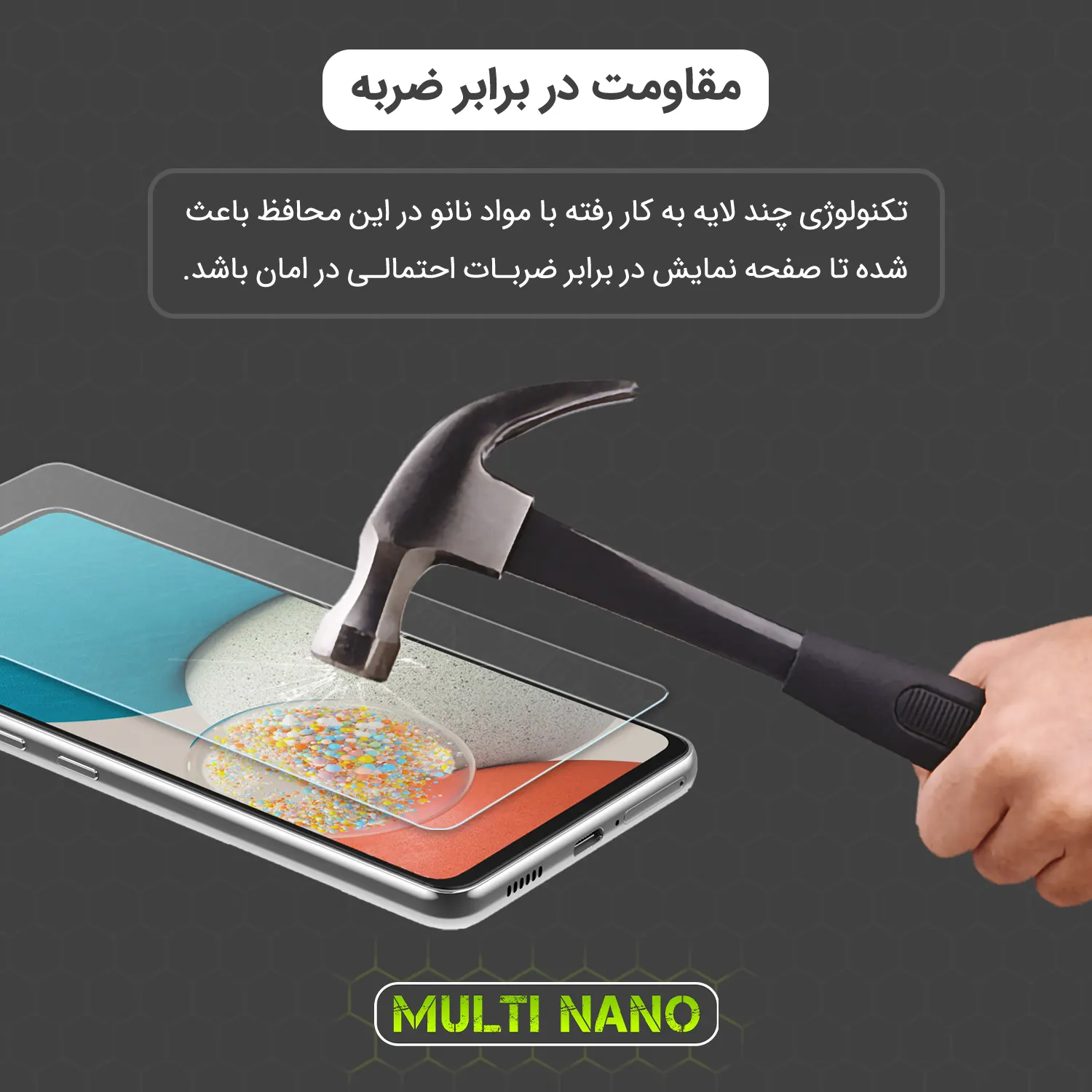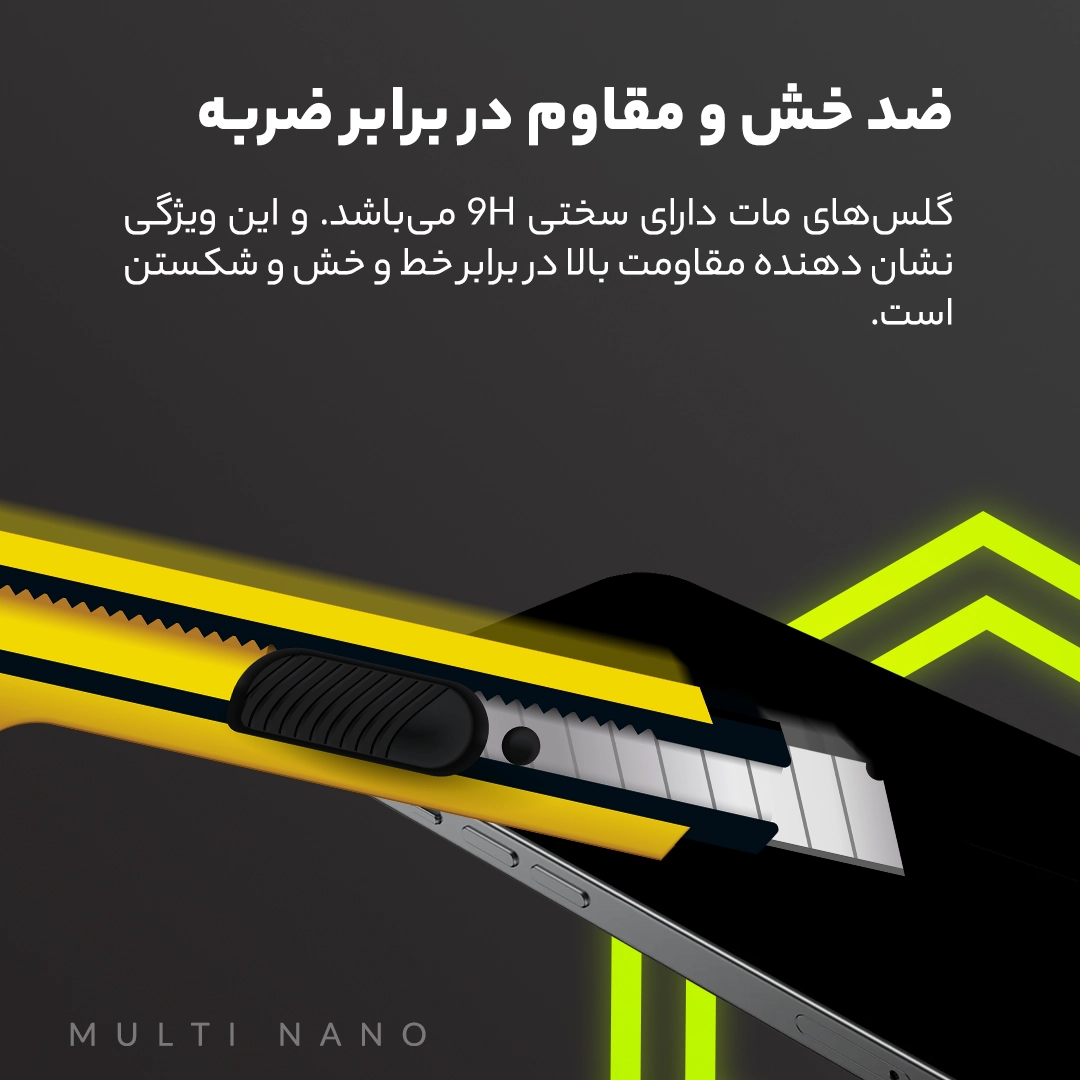 این محافظ صفحه از شیشه 9H تقویتشده ساخته شده و در برابر ضربههای روزمره، فشار دست، برخورد با اجسام تیز و خطوخش مقاومت بالایی دارد.